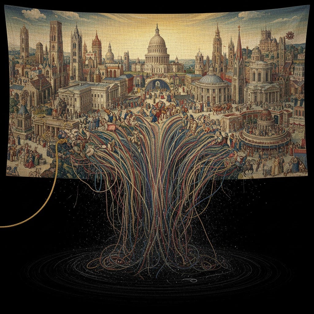 This is not optimism. It offers no guarantees. The unraveling may be long, chaotic, marked by tremendous suffering. The forces of extraction will not vanish because their legitimacy has collapsed; they will adapt, reconfigure, find new mechanisms of capture.