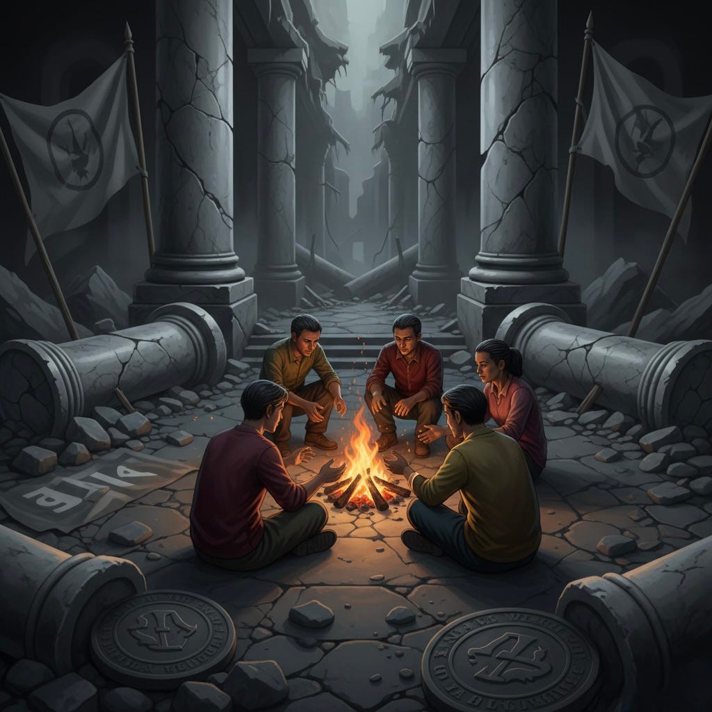What can be done is the construction of alternatives, not as utopian projects but as practical necessities. As existing structures lose legitimacy and functionality, spaces open for different modes of organization. The question is whether those spaces will be filled by fragmentation and warlordism or by coordination patterns that actually serve human flourishing.
