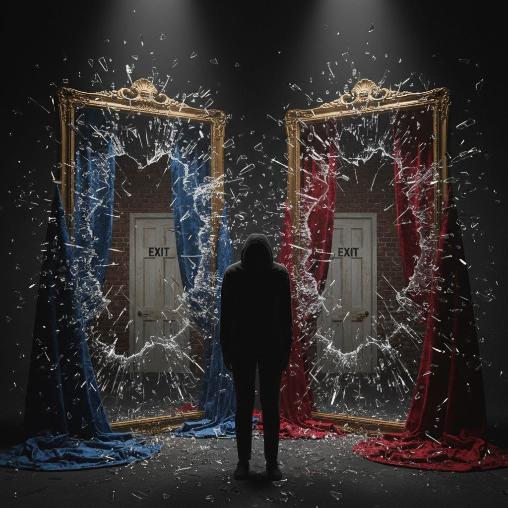 Most people, across the spectrum, maintain some residual faith that at least part of their side’s leadership is legitimate. Perhaps with sophisticated caveats: systems are complex, there are competing factions, not everyone is corrupt. But beneath these qualifications lies a baseline assumption: the institutions can be made to work, they are ultimately oriented toward what they claim to serve.